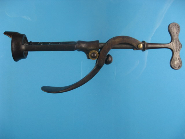 As indicated earlier Wells also sold a steel two-pillar corkscrew with two top handles marked B B WELLS 431 WEST STRAND. A very similar but not identical two-pillar corkscrew marked B B WELLS 431 STRAND AND 143 LEADENHALL ST was sold at a Christie’s auction in October 2006. This latter corkscrew (see below) from the above research can be dated from 1850 to 1870.